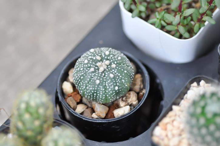 O cacto-estrela (Astrophytum) recebe esse nome por conta de sua forma rechonchuda e em forma de estrela. Em casa, geralmente não passa dos 30 centímetros, mas pode chegar a até um metro e meio em outros ambientes. Possui poucas flores, geralmente uma ou duas, cujas pétalas mudam do branco para o amarelo.