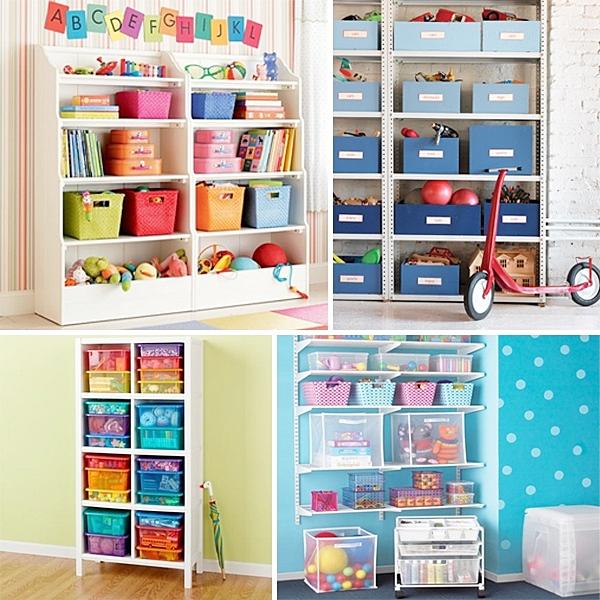 Quartos de crianças também são cômodos em que uma estante é fundamental, para arrumar todos os brinquedos e demais acessórios dos mais pequenos da casa. Para estantes de quartos infantis, as caixas de arrumação são quase obrigatórias, pois permitem-nos organizar tudo muito melhor. Também pode etiquetas as caixas, para os mais pequenos saberem onde procurar.