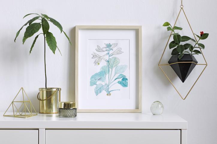 Em casa temos móveis em que já acomodamos objetos e nos quais se apoiarmos um quadro pode ficar lindo. Sobre uma prateleira, uma mesa auxiliar, uma estante ou, até mesmo, no chão. Se você é dessas pessoas que não se aquieta com a decoração da casa e gosta de experimentar coisas novas, você vai adorar essa opção, porque poderá mudar os quadros de posição sempre que quiser, sem problemas.