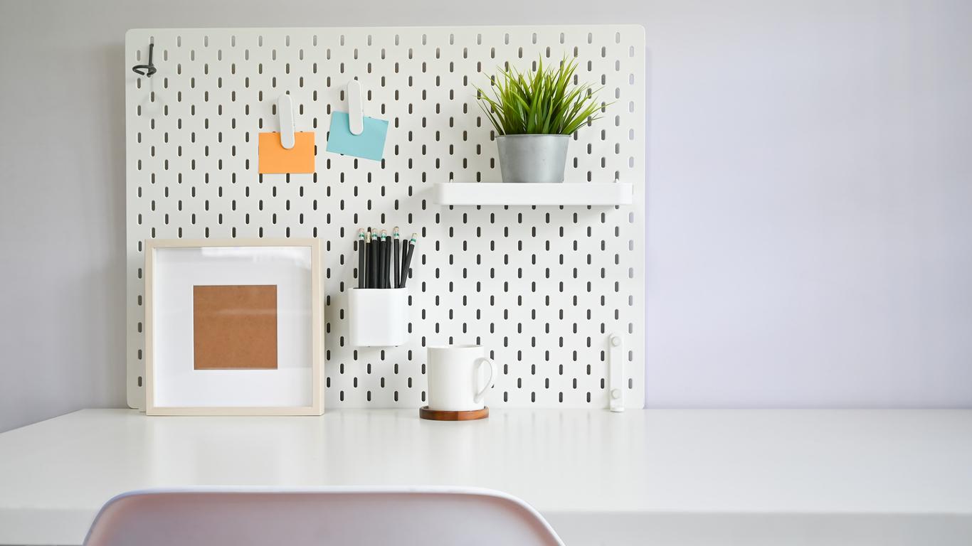 Se você quer pendurar vários quadros, mas não que furar a parede, uma das opções que você tem é usar painéis ou pegboards encostados na parede. Os paneis podem ser, por exemplo, de cortiça, de metal ou qualquer outro material que você julgue que combine mais com a sua decoração.