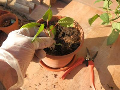 Pode a planta. Para assegurar sua conservação transplante-a para um vaso maior e pode os talos a uns 10 centímetros da base, aproximadamente. Depois coloque no talo cera de vela para fechá-lo.