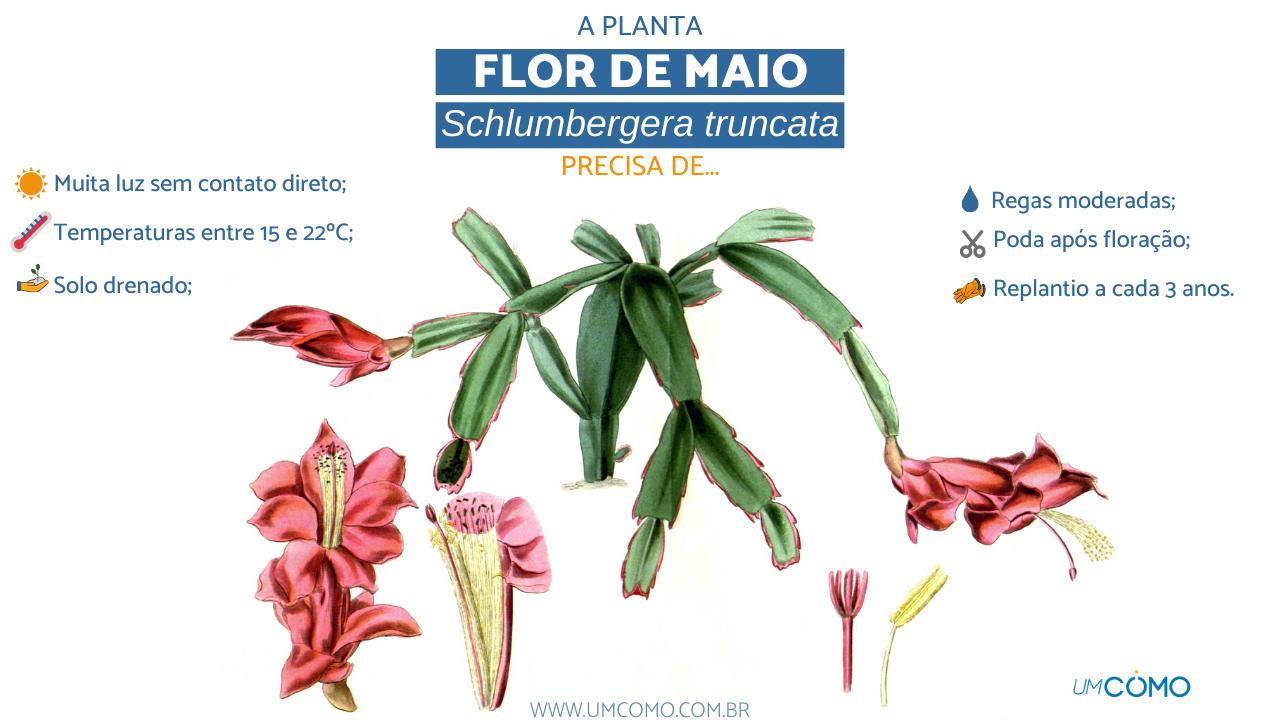 As Schlumbergera truncata, flor de maio, ou flor de seda, crescem e se desenvolvem de forma semelhante a algumas orquídeas, pois podem ser afixadas em troncos de arvores. São belas flores e alegram o outono enquanto as folhas das outras caem, mas estas, necessitam de alguns cuidados especiais pois é comum que a planta fique frágil após a sua floração. No seu jardim, você pode usar a flor de maio para deixar dentro ou fora de casa, de maneira pendente, em copas de árvores, em vasos ou cachepôs, mas para conseguir isso é melhor dar uma consultada neste artigo do umCOMO que te ensina como cuidar da flor de maio e como fazer com que ela continue saudável mesmo após a sua floração.