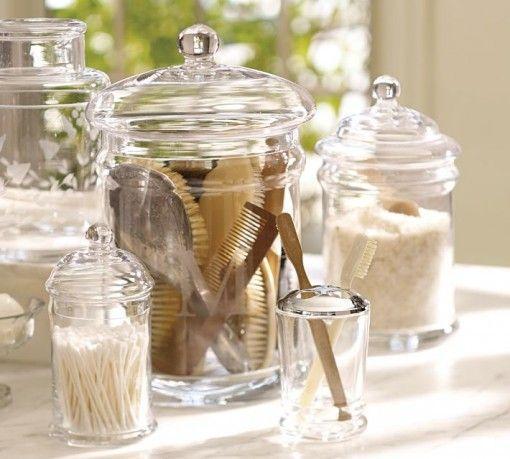 Por exemplo, os cotonetes podem ser retirados da caixa e colocados nestes recipientes de vidro, conseguindo ordená-los com bom gosto; o mesmo pode ser feito com os sabonetes de mão, as escovas para o cabelo ou os acessórios.