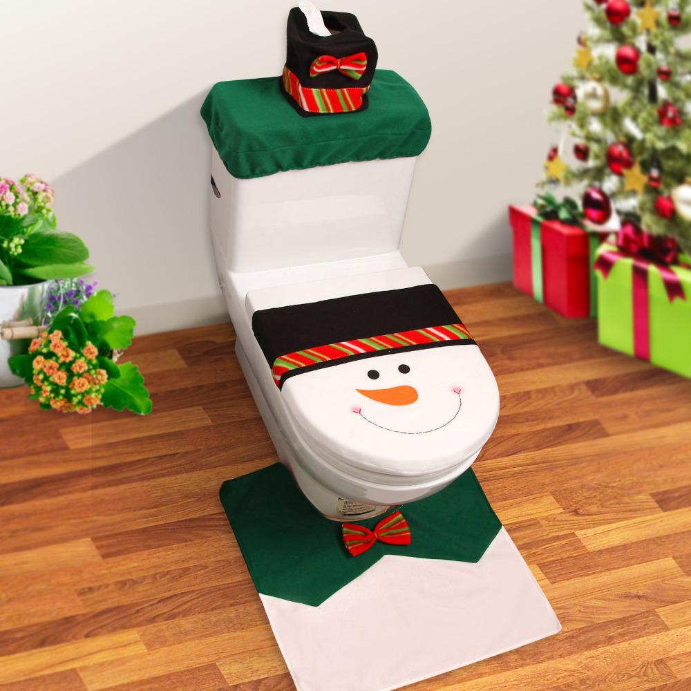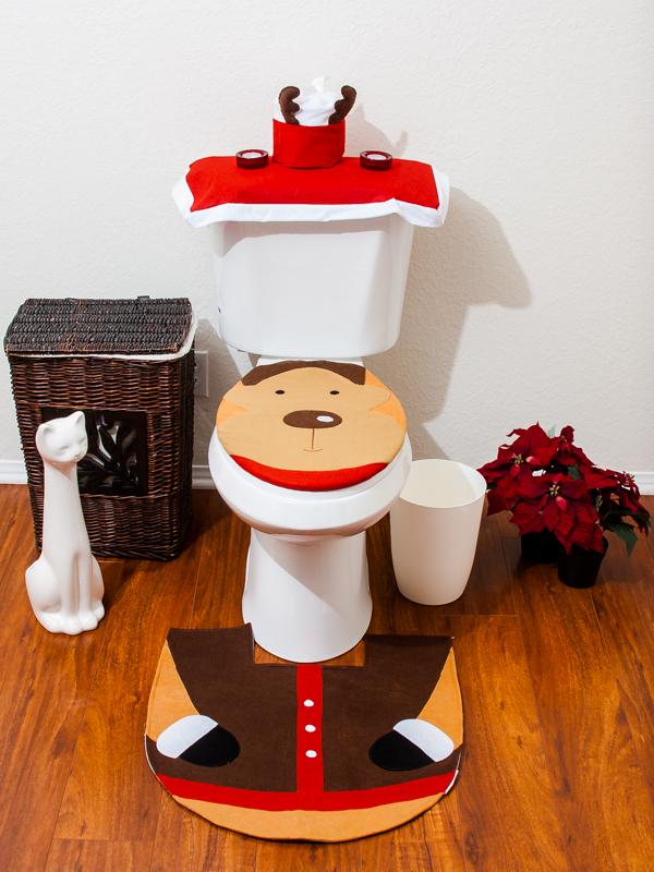 Uma das coisas que você poderá decorar para o Natal no banheiro é o vaso sanitário. Você pode comprar uma tampa para o vaso sanitário ou uma capa em conjunto com um tapete com motivos natalinos. Só isso já vai criar um verdadeiro ambiente de Natal no seu banheiro.