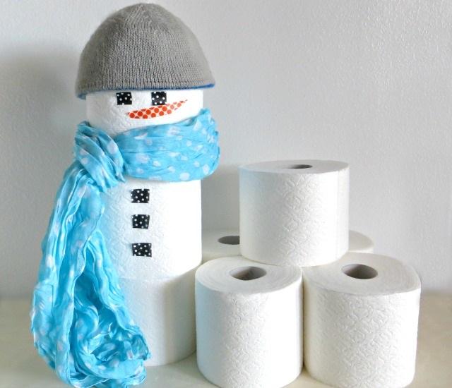 Sabe os rolos de papel higiênico que tem a mais no seu banheiro? Pode aproveitar e dar-lhes também um toque diferente para o Natal adicionando uma fita vermelha ao seu redor ou, até pintando um rosto de boneco de neve em uma das folhas do rolo.
