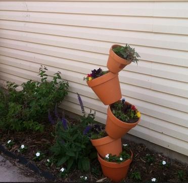 Fixe uma barra de ferro no solo, a vareta deve medir um metro ou metro e médio. O vaso que pomos na base deve ser o maior e à medida que vamos subindo, os vasos devem ser menores. Para pôr os vasos na vareta, faça um buraco na base do vaso, coloque-o na vareta e depois encha de terra, finalmente plante a planta. Lembre-se de regar a torre de vasos de cima para baixo.