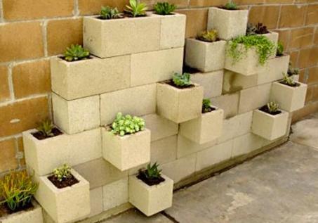 Se você tem um jardim elegante, minimalista e com um ponto Zen recomendamos essa decoração, pois é muito elegante e econômica. Coloque os blocos de cimento de forma original como na foto e depois encha de areia e plante as plantas.
