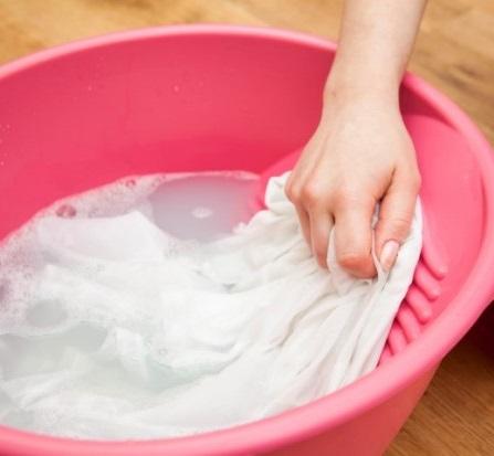 Experimente também colocar em uma vasilha com água um pouco de sabão em pó e bicarbonato de sódio em quantidade igual, mexa bem e acrescente a roupa que pretende clarear. Deixe atuar por 30 minutos e lave normalmente em seguida.