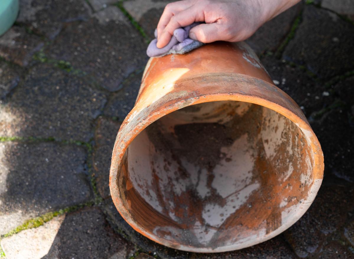 - Esfregue o exterior e o interior do vaso com uma escova ou bucha.