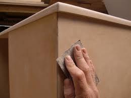 Técnica da decapagem. Esta é uma técnica que consiste em lixar a superfície do móvel. Você deve fazê-lo com suavidade, já que o efeito que desejamos conseguir é que a parte superior fique rugosa. Para isso, pode utilizar uma lixa fina.
