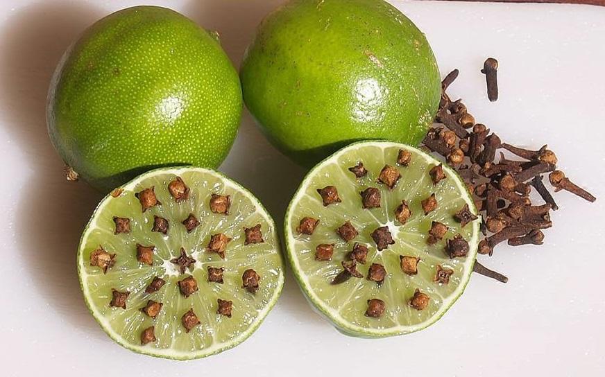 Corte alguns limões ao meio e espete em cada metade alguns cravos-da-índia.