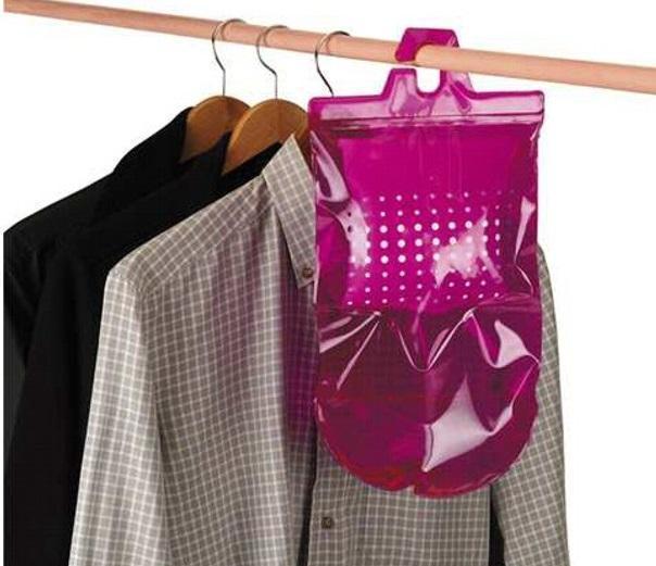 Você encontrará à venda dispositivos específicos contra a umidade dos armários. Eles controlam a umidade, evitam a formação de mofo e inclusive existem alguns que são perfumados para combater o mau cheiro e deixar uma agradável fragrância na roupa e demais artigos. Estão disponíveis em diferentes formas e tamanhos.