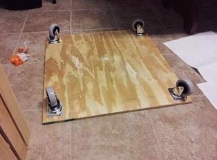 Para a base, corte uma placa de madeira mdf com as medidas da sua nova mesa. Envernize-a ou pinte-a se for necessário e aplique uma roda em cada um dos cantos.