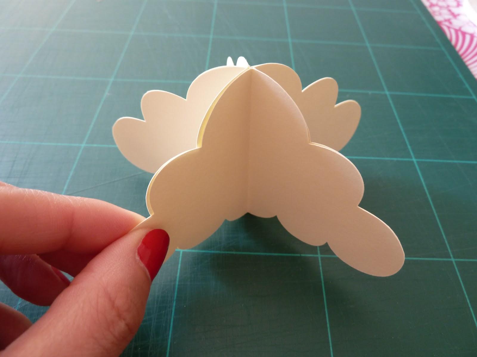 Amarre o fio nylon com o tamanho necessário para pendurar, passando-o pelo furinho (com cuidado para não rasgar o papel). Encaixe um desenho no outro igual, encaixando os cortes um no outro para obter um resultado tridimensional. Amarre a outra extremidade do fio nylon no palitinho de churrasco amarrado e repita o processo até encher de figurinhas em redor.
