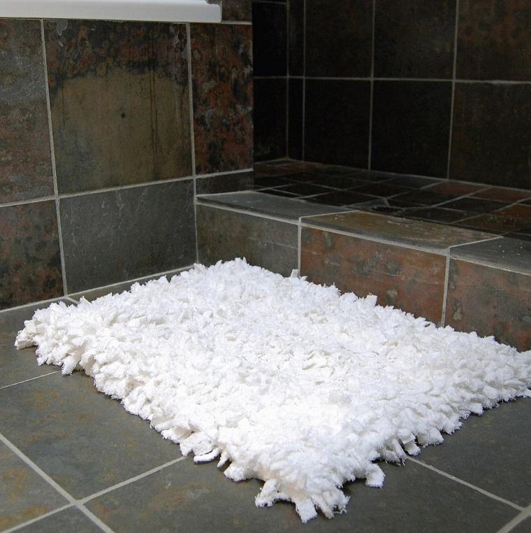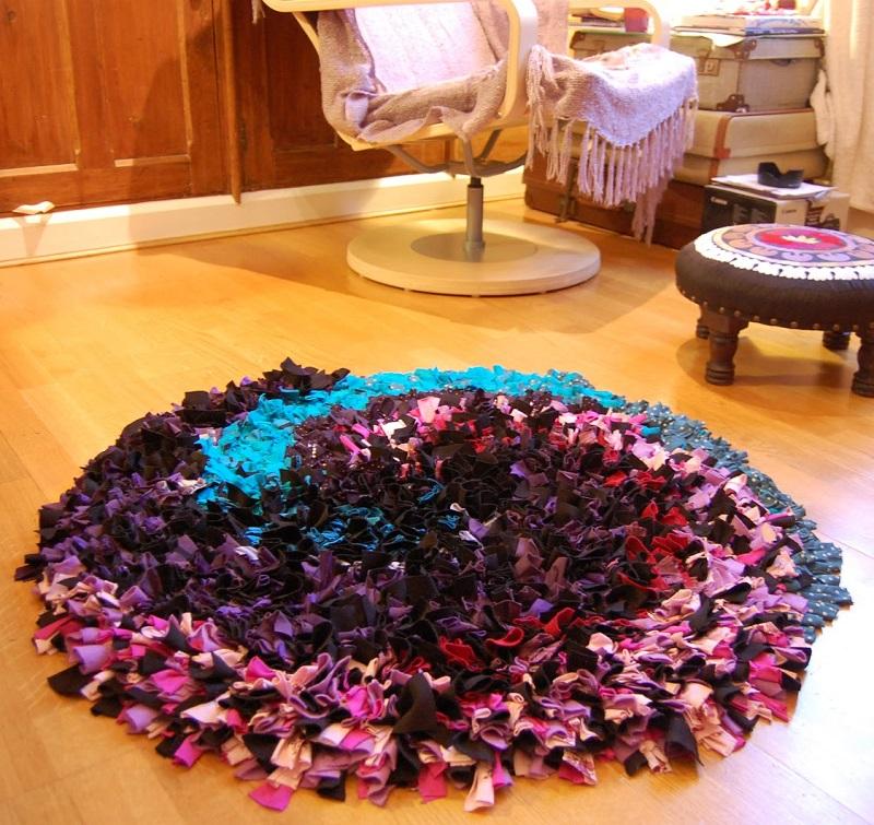 Quando tiver amarrado os retalhos em toda a tela, seu tapete está finalizado e pronto a ser colocado no chão! Este tipo de tapetes fica muito bem como tapete de banheiro, por ser macio e absorver bem a água, mas você poderá colocá-lo no cômodo que quiser!