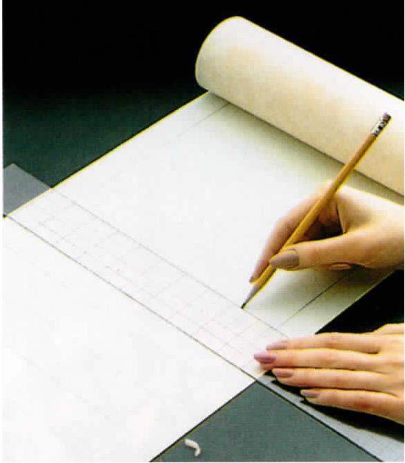 Marque no verso do papel com um lápis uma linha paralela ao longo de cada borda e a uma distância de 2,5 cm. Marque uma série de linhas de dobragem entre as linhas paralelas aos bordos curtos e com um intervalo de 4 cm.