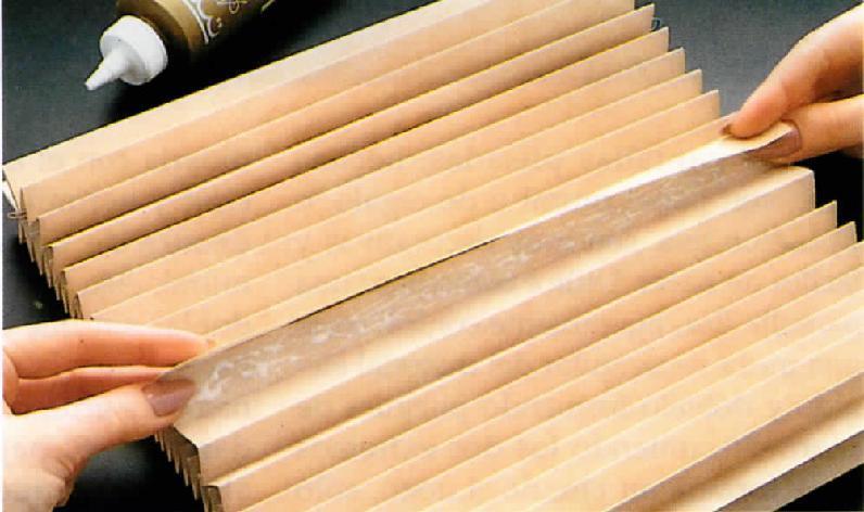 Retire o cordel e o papel. Monte os extremos curtos do papel de parede dobrado e cole-os com adesivo. Deixe-os secar durante umas horas.