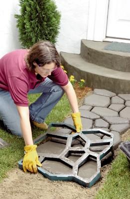 Fazer um caminho de pedras naturais em seu jardim pode se revelar dispendioso, sobretudo se o caminho for longo. Como alternativa muitas pessoas optam pelo concreto simulando pedras, usando moldes de diferentes formas e desenhos.