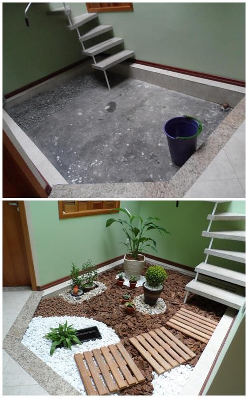 Se, por outro lado, você morar em um apartamento, feche uma varanda com paredes ou painéis altos, deixando-a aberta em cima. No caso de não pretender mexer com a área exterior da casa, o ideal é que coloque o jardim sob uma claraboia, teto de vidro ou escadas, reforçando a iluminação neste último caso.