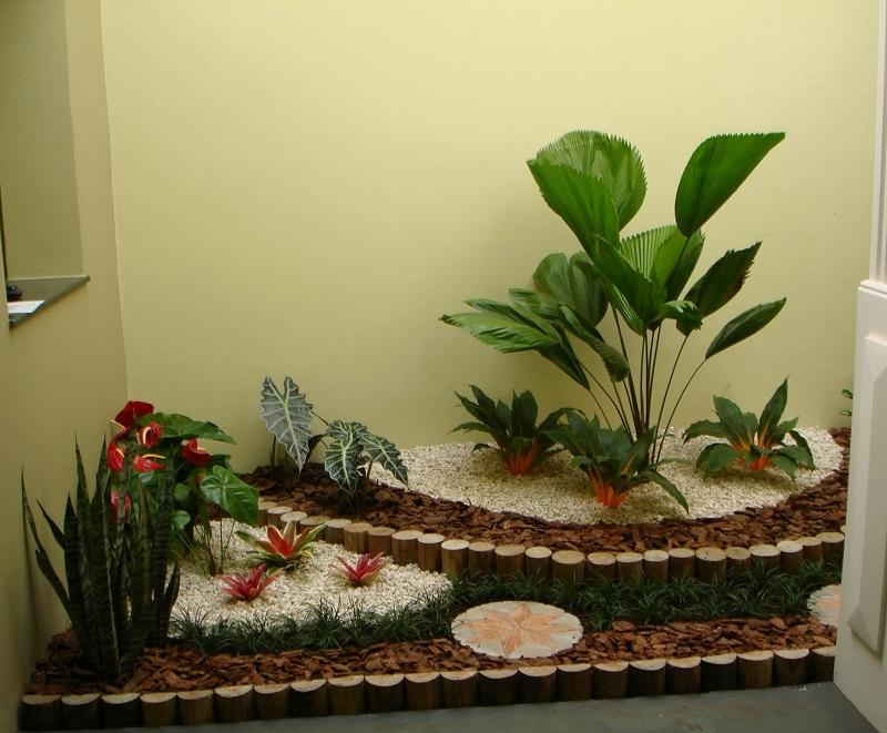 Num jardim interior as plantas não são os únicos elementos que contribuem para a decoração e beleza deste.