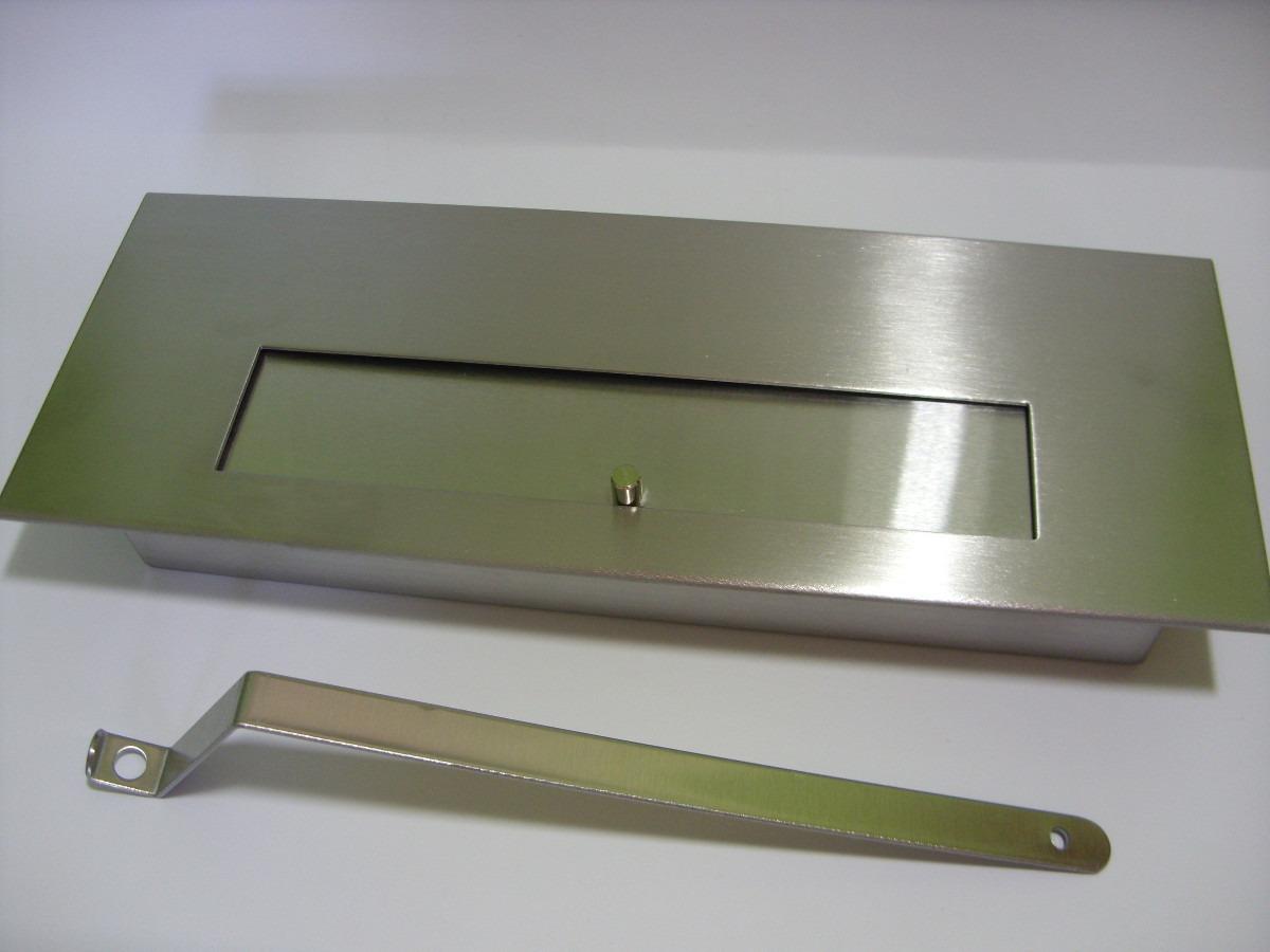 Peça para que a tampa tenha uma abertura como um corte de 2 centímetros, por onde você vai coloca o bioetanol e por onde o fogo vai sair.