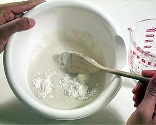 Passe a peça por água de forma a remover o detergente, seque-a e observe-a: ela recuperou o brilho? Se não, continue o processo de limpeza e prepare uma pasta de limpeza caseira, misturando farinha com vinagre.