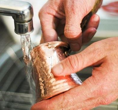 No caso de panelas de cobre mais sujas, você pode misturar água com vinagre branco e deixar a panela repousando nesta mistura durante umas duas horas. Depois enxágue com água muito quente e salgada. Seguindo estes passos você vai ver como suas panelas de cobre com verniz ficam perfeitas.