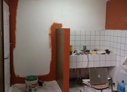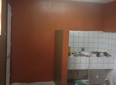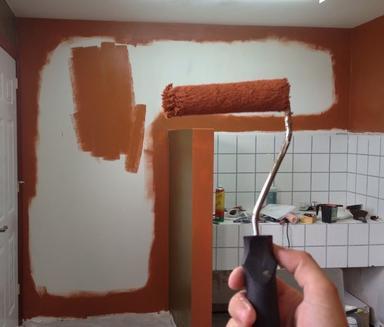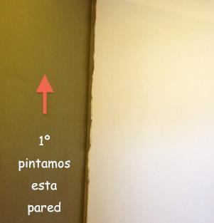 Quando já estiver equipado corretamente, você deve começar a preparar a parede, primeiro passe um papel de cozinha sobre a parede para evitar que tenha qualquer gota ou umidade. Primeiramente pintaremos a parede com a cor principal, não se preocupe se não ficar bem, quando pintarmos com a segunda ficará melhor.