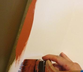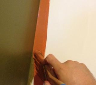 Na segunda mão de tinta na área, você deve pegar o pincel mais firme e passá-lo perto do canto, você verá como a pintura vai ficando bem repartida por toda a área que passar com o pincel. Se puder, pegue um pano para remover a tinta, faça rápido antes que a tinta seque.