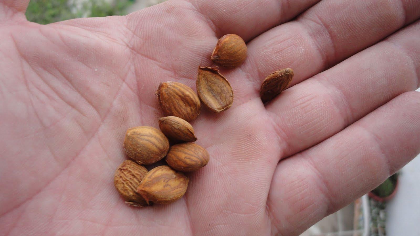 Depois de secos, deverá quebrar os caroços com cuidado com um quebra-nozes. Deve colocar o caroço de forma horizontal no quebra-nozes e quebrar com cuidado, pois se esmagar uma semente ela não poderá ser plantada.