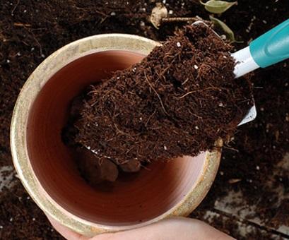 Prepare um vaso largo e relativamente fundo, coloque nele argila expandida ou algumas pedras, para ajudar na drenagem, e verta substrato até ao topo. Regue um pouco para o substrato assentar.