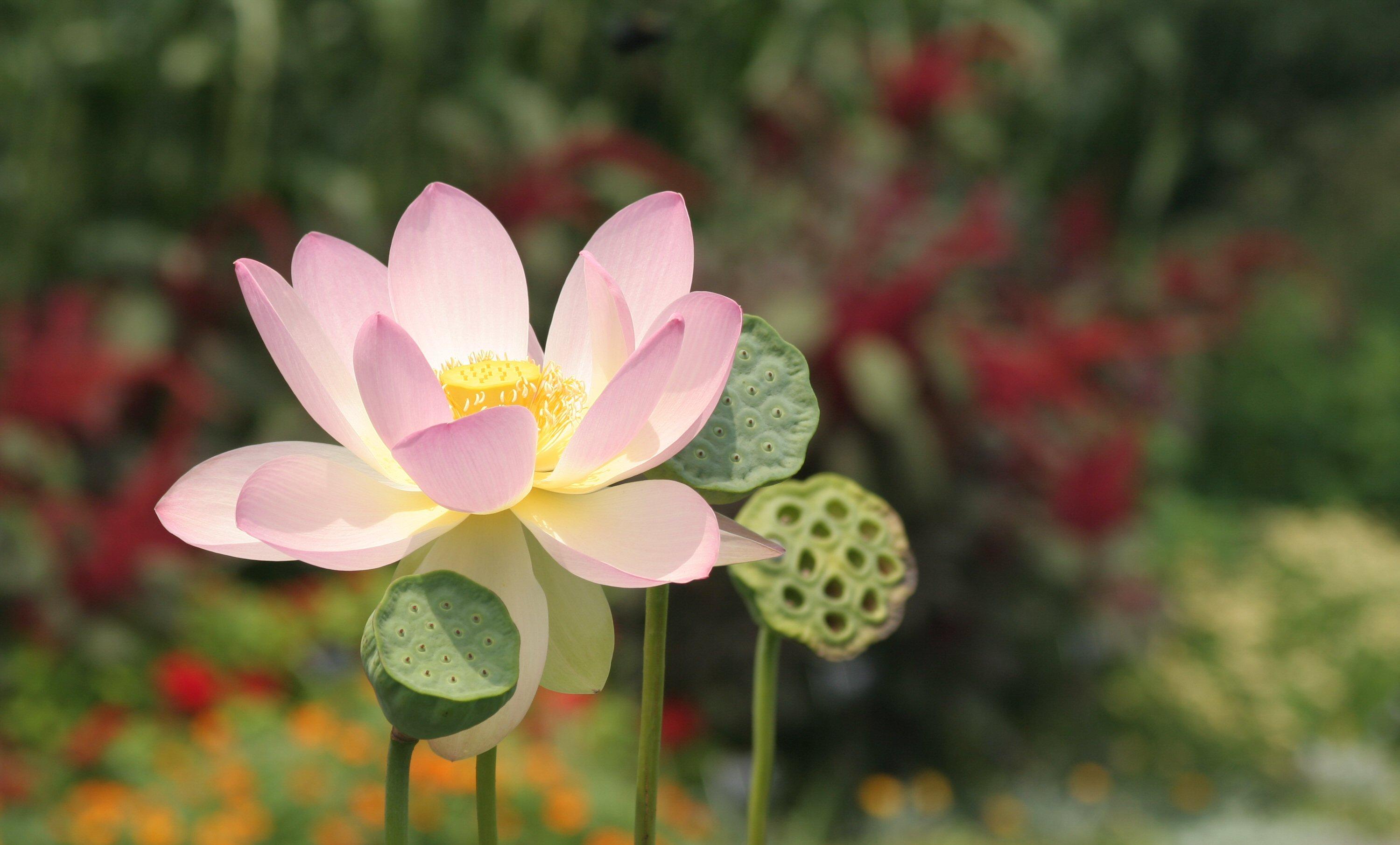 As flores de Lótus geralmente florescem no início da primavera, são solitárias e únicas e quando elas murcham - geralmente após dois dias do desabroche - deixam as suas sementes. O seu perfume é suave mas nem por isso deixa-se passar por despercebido. A planta não tolera climas muito frios ou geadas e deve estar exposta ao sol intenso.