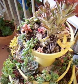 Faça uma recolha de seus vasos quebrados e coloque-os sobre um prato de cerâmica grande, criando uma composição com todas eles. Poderá pôr plantas de diferentes tipos, que não precisem de muita água, em cada um dos vasos para criar uma composição original e bonita.