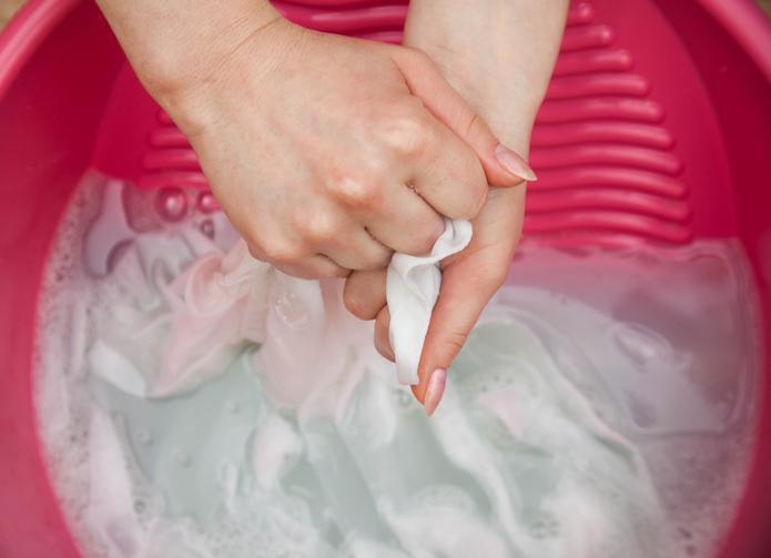 - Enxágue a roupa com água até que todo o detergente seja removido.