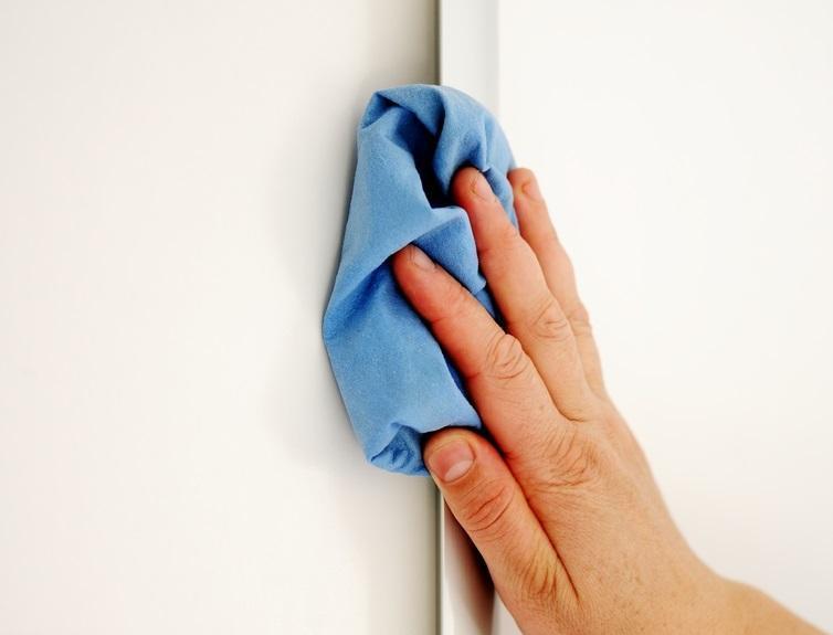 - É importantíssimo umedecer os panos ou esponjas e não empapá-los para não danificar as paredes.