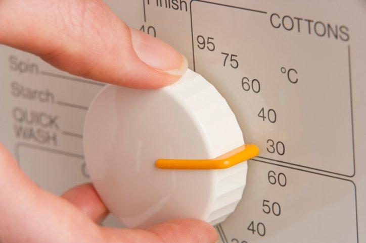 Agora defina a temperatura da água, consoante o tecido, a cor e o grau de sujeira. Você deve utilizar a água fria para peças com pouca sujeira, peças delicadas e cores escuras ou vivas. A água quente deve ser utilizada para as peças brancas e roupas muito sujas. Enquanto que a água morna deve se usar para lavar tecidos de tons claros e com um nível de sujeira moderado. Se surgir alguma dúvida quanto à temperatura da água, consulte sempre a etiqueta da peça.