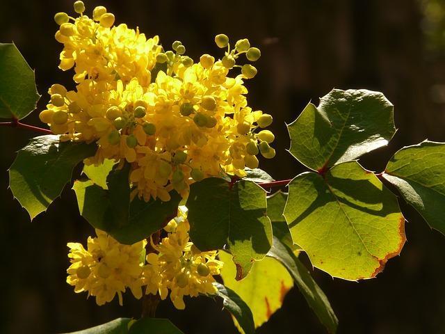 Este é mais um arbusto capaz de se adaptar a qualquer tipo de solo e clima, mas que no inverno também produz flores de cor amarela que, ao frutificar, produzem cachos de uva. Além disso, a mahonia suporta as geadas e, em áreas extremamente frias, as suas folhas ficam roxas. No entanto, o tipo aquifolium varia a sua cor de verde limão a avermelhado no inverno, o que oferece um aspecto muito bonito para qualquer jardim.