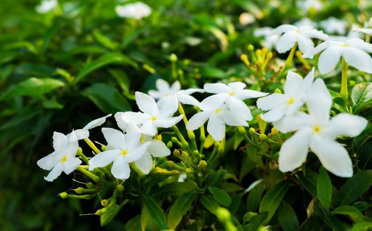 Tipo de arbusto pequeno e de flores decíduas, o Jasmim é uma das plantas resistentes ao sol e ao frio, além de ser muito popular como escolha de planta ornamental, graças às bonitas flores brancas. É bastante valorizado como ingrediente nos cosméticos, por conta da fragrância e de suas propriedades relaxantes e estimulantes.