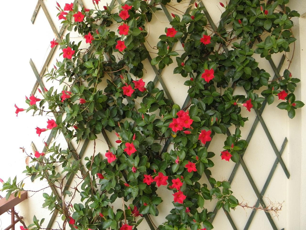 Também chamada de jasmim-brasileiro, a dipladênia é uma opção se você busca plantas trepadeiras com flores cheirosas. Ela cresce bastante rápido, mas você deve levar em conta, antes de plantá-la, que suas raízes necessitam de muito espaço. Ela gosta de calor e água, ambos em abundância, por isso não é boa opção para lugares de temperaturas baixas e pouco sol.