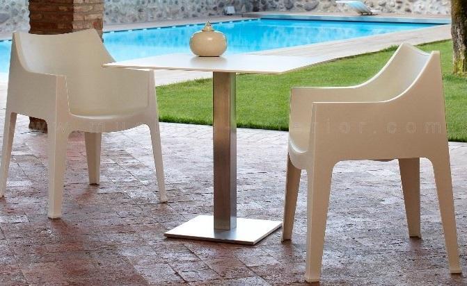 As fibras sintéticas, como a resina ou o plástico, também estão na moda para materiais de mobiliário para jardim. Oferecem uma imitação dos móveis de vime ou rattan, sendo bem mais fáceis de limpar e de manter que estes. Suportam muito bem tanto as mudanças de temperatura como os agentes externos, de forma que você não deve se preocupar muito com a sua manutenção. Caso queira poupar espaço ou esteja procurando móveis de estética minimalista e moderna, os móveis de plástico podem ser convertidos em seus melhores aliados. Estão disponíveis em uma grande variedade de cores e estilos.