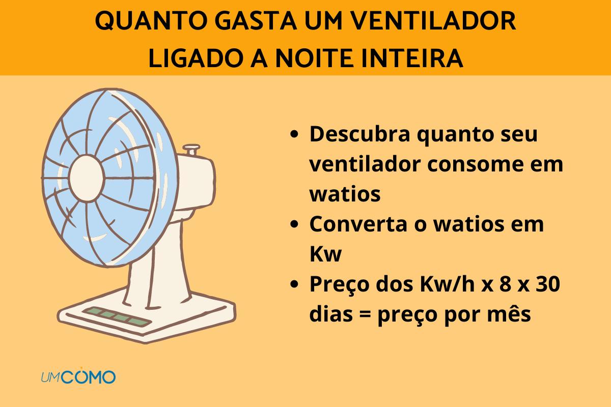 Para calcular quanto gasta um ventilador ligado 8 horas por dia, é necessário seguir estes passos: