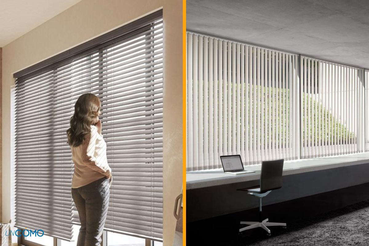 Também são conhecidas como persianas horizontais devido à disposição das suas lâminas e são muito comuns em escritórios. Elas são duráveis e fáceis de instalar. Geralmente são metálicas e as suas lâminas finas permitem uma abertura maior ou menor para regular a luminosidade interior e também para controlar a passagem do ar com as janelas abertas. Também é uma persiana comum nas portas. Você pode encontrá-las em lindos designs baseados em cores vivas, o que as torna elementos de decoração para diversos espaços.