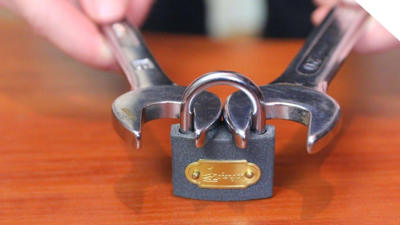 O nome é complicado mas esse truque para abrir o cadeado é bem simples! Vamos começar a te ensinar a abrir cadeado desta maneira porque acreditamos que seja a mais simples a se fazer. Ela é ótima para abrir cadeado pequeno, mas também serve para os grandes. Tenha em mãos um cadeado fechado, duas chaves de boca, aquelas de retirar parafusos. Também é bom ter alguns pedaços de ferro nas mãos para isso.